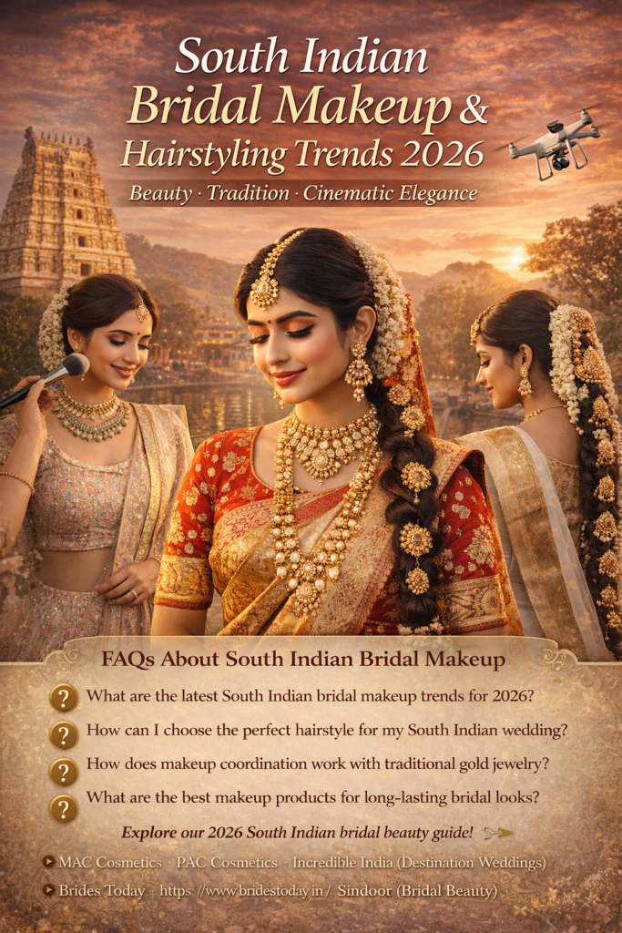Bridal beauty trends are shaped by social media inspiration, celebrity weddings, makeup artist innovations, improved beauty products, and the rise of destination weddings. The 2026 bride values individuality, cultural identity, comfort, and long-lasting performance. The shift toward breathable makeup, photographic lighting compatibility, and drone aesthetics contributes to why South Indian Bridal Makeup is gaining global admiration.